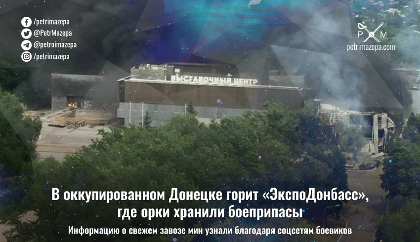В оккупированном Донецке продолжаются прилеты по местам хранения боеприпасов или военной техники рашистов. Сегодня во второй половине дня появились подтверждения пожара в здании «ЭкспоДонбасса».