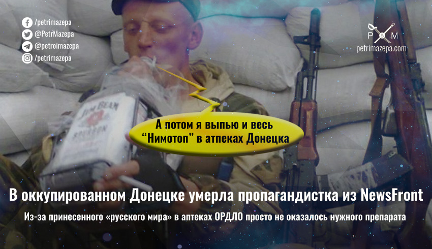 В этой ситуации остается радоваться, что «русский мир», пропагандой которого занималась под псевдонимом Катя Катина или «Рыжая с камерой» умершая Василенко, не сильно распространился по территории Украины. И в других крупных городах «Нимотоп» доступен (хоть и стоит недешево) в десятках аптек.