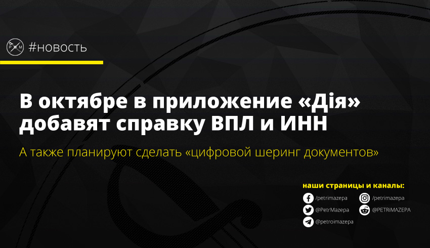 А в приложении «Дія» появятся справка ВПЛ, цифровой ИНН и цифровое свидетельство о рождении. Также станет доступен цифровой шеринг документов, который должен облегчить предоставлении копии документов (если банки и другие учреждения, конечно, согласятся принимать такие копии)