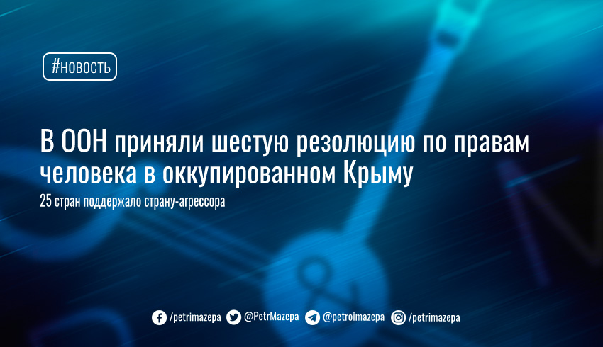 На заседании Генассамблеи ООН была принята шестая резолюция «Ситуация с правами человека во временно оккупированных Автономной Республике Крым и г.Севастополь, Украина», сообщает пресс-служба МИД Украины.
