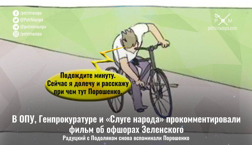 В Офисе генпрокурора, Офисе президента и партии «Слуга народа» прокомментировали обнародованный изданием «Слідство.Інфо» фильм об офшорах президента Владимира Зеленского. Венедиктова заявила, что информация для прокуроров не была и не могла быть сюрпризом, Даниил Гетманцев попытался перенести акценты на анти-офшорное законодательство, принятое командой Зеленского, а депутат «Слуги народа» Михаил Радуцкий, как и советник главы ОПУ Михаил Подоляк, снова вспоминали Порошенко.