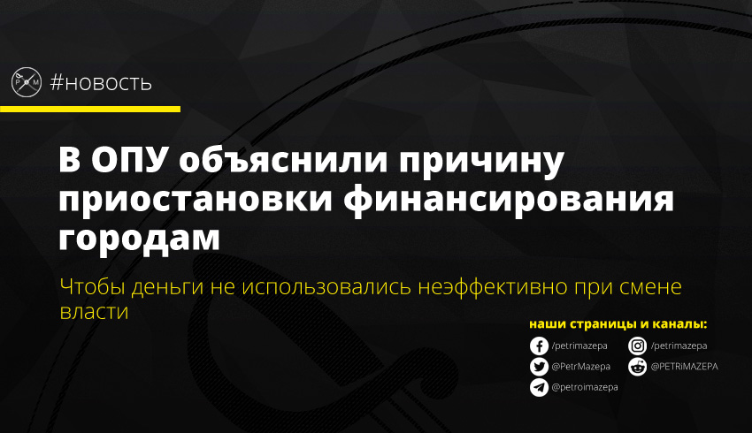 Офис президента Украины (ОПУ) сообщил, что финансирование местным бюджетам на социально-экономическое развитие было заблокировано для недопущения неэффективного использования бюджетных средств в рамках проектов, несущих коррупционные риски. И уточнили, что при смене власти такие траты часто наблюдались.
