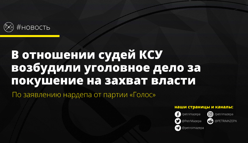В Единый реестр судебных расследований внесены данные про уголовное производство про «захват государственной власти судьями Конституционного суда». По словам нардепа от партии «Голос» Ярослава Юрчишина – это первый шаг, который в будущем позволит, не нарушая Конституцию, перезапустить КСУ.