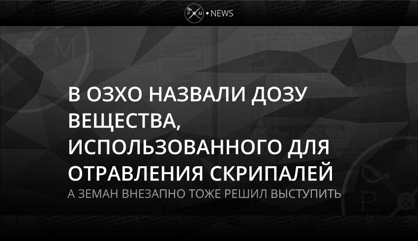 Тем временем президент Чехии Милош Земан решил устроить каминг-аут поведать о том, что нервно-паралитическое вещество типа «Новичок», которым травили отца и дочь Скрипалей, изготавливали на территории его станы. Правда, в небольших количествах, и сразу уничтожили после испытаний, но «было бы лицемерием делать вид, что ничего не произошло», – цитирует президентские откровения издание Ceske Noviny.