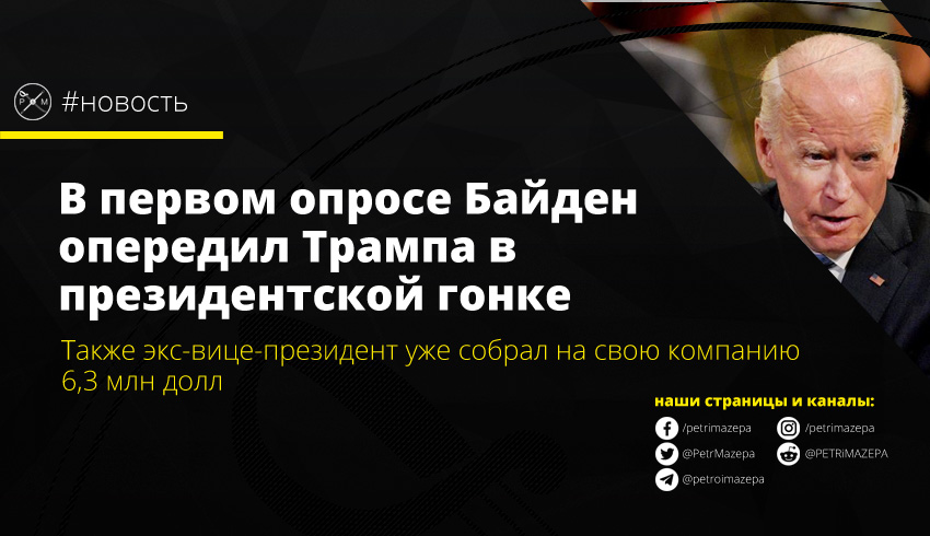 Всего через сутки после объявления о своем решении бороться за кресло президента США, бывший вице-президент США Джо Байден смог собрать более 6 млн долл на проведение кампании и обойти действующего президента Дональда Трампа в опросе.