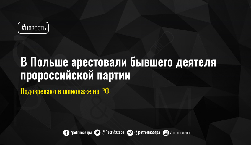 Польское Агентство внутренней безопасности задержало бывшего деятеля пророссийской партии «Смена» Януша Н. по подозрению в шпионаже в пользу РФ. Участие в деятельности иностранной разведки против Республики Польша наказывается лишением свободы от одного до 10 лет.