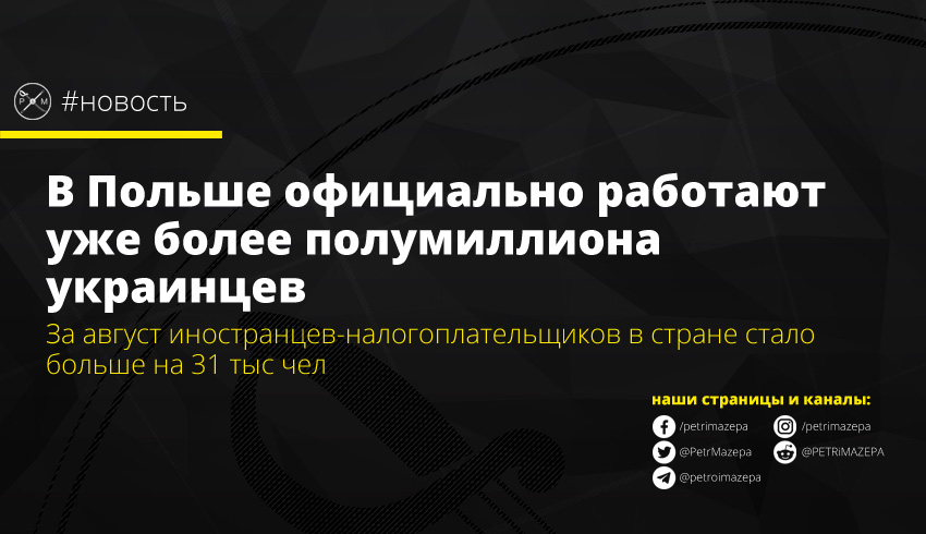 В Управлении социального страхования (ZUS) Польши зарегистрировано 689 тыс. иностранцев, платящих в стране налоги. Из них не менее 75% (507 тыс.) являются гражданами Украины.