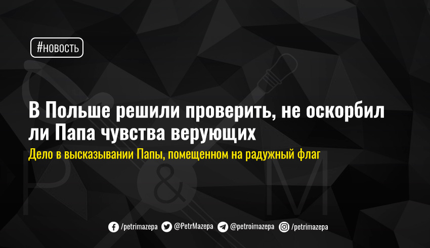 Прокурор районной прокуратуры Варшавы проверяет, не оскорбляют ли чувства верующих слова Папы Римского Франциска «Бог любит тебя таким, какой ты есть», помещенные на радужном флаге.