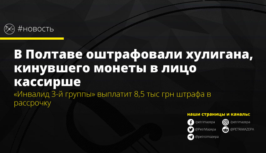 В Полтаве оштрафовали хулигана, кинувшего монеты в лицо кассирше