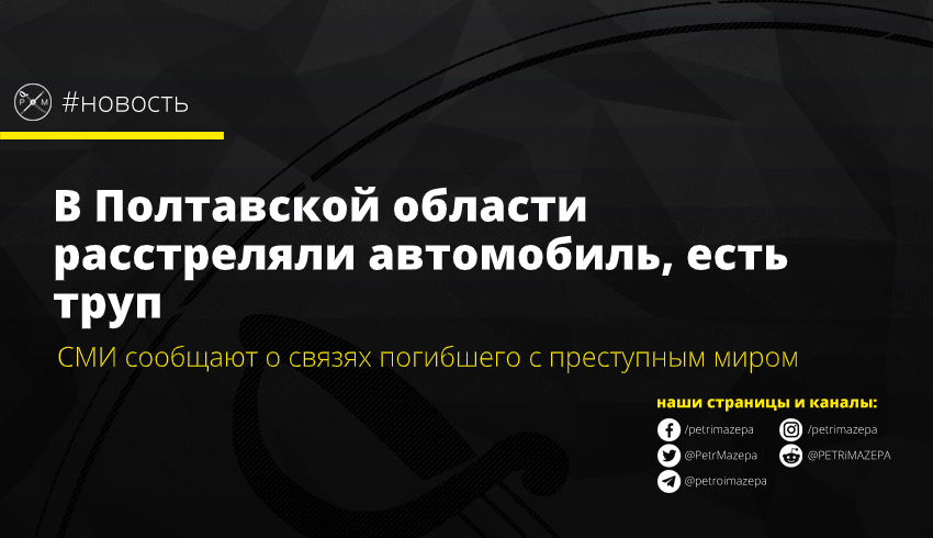 В Полтавской области на трассе Киев-Харьков был обнаружен расстрелянный автомобиль. В салоне обнаружено тело человека, по данным СМИ, Александра Мазура, который связан с криминальным миром.