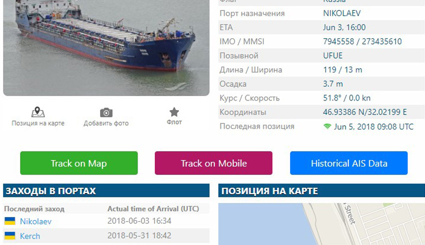 3 июня судно зашло в акваторию морпорта Николаева, прошлой ночью оно пришвартовалось у 15 причала — причала нефтяной базы, вероятно, под разгрузку. По имеющейся информации, на территории нефтеперегрузочного комплекса работает компания «Миконт», сообщают «НикВести» со ссылкой на данные онлайн-ресурса MarineTraffic. Первым об этой ситуации написал экс-прокурор Кировоградской области Сергей Жолонко в своем Facebook.
