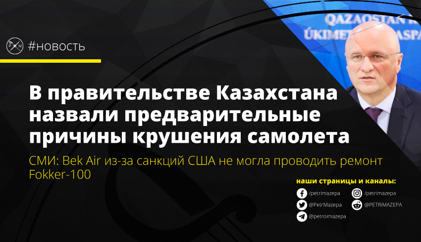 Заместитель премьер-министра Республики Казахстан Роман Скляр назвал предварительные причины падения самолета в Алматы. Также он сообщил, что следствие будет разбираться – находилась ли компания Bek Air под санкциями США и как это повлияло на безопасность ее самолетов.