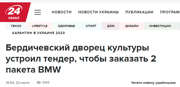 «Бердичевский дворец культуры тендер не проводил. Как видите, в Prozorro эта закупка отражена как такая, что "проведена без использования электронной системы". То есть это прямое соглашение с поставщиком, которую заключил Бердичевский дом культуры, и о которой был обязан отчитаться в системе. Что он и сделал», - сообщает Prozorro.