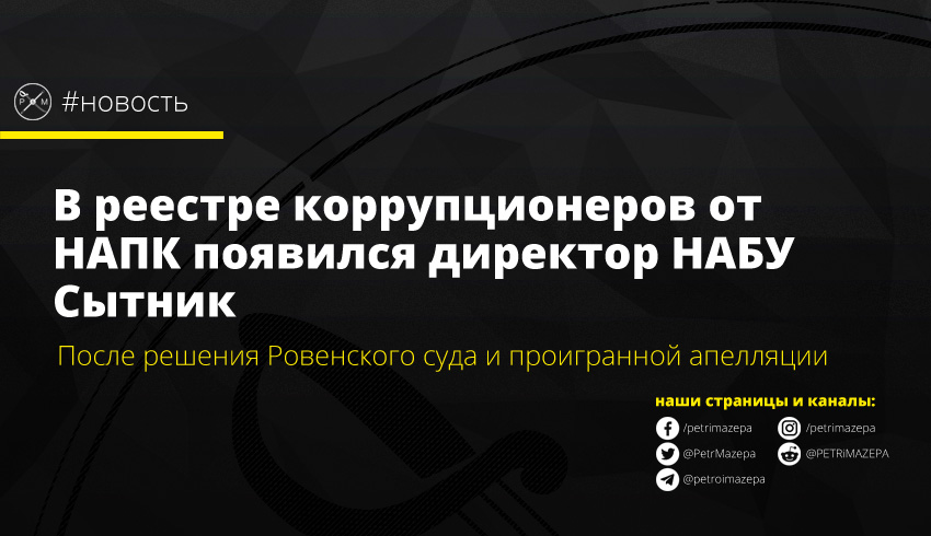 Директора НАБУ Артема Сытника внесли в Единый реестр коррупционеров. Основанием для этого послужила решение Ровенского суда и последующая проигранная апелляция. Адвокат Сытника настаивает, что это решение не является поводом для отстранения его подзащитного от должности.