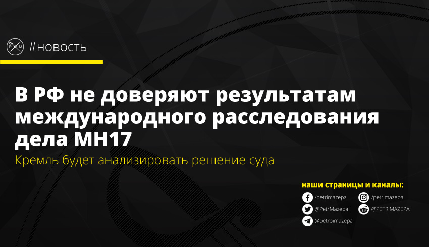 Пресс-секретарь президента РФ Дмитрий Песков рассказал, что в РФ будут анализировать решение суда по МН17, передает «РБК-Украина» со ссылкой на росСМИ. «Мы всегда подвергали сомнению объективность работы следственной группы, поскольку мы были лишены возможности участвовать в ней», - отметил Песков.