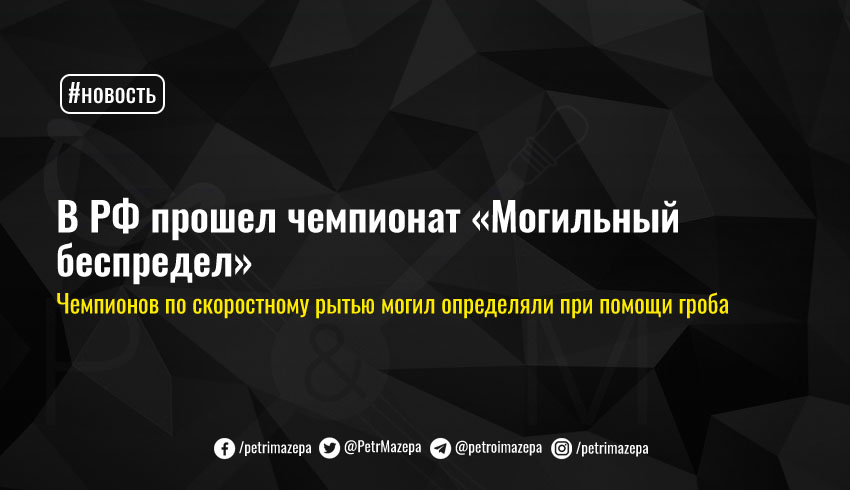 В Новосибирске, РФ, прошел чемпионат по скоростной копке могил под интереснейшим названием «Могильный беспредел». За победу и денежный приз сражались три команды россиян, а победителей определяли при помощи гроба.