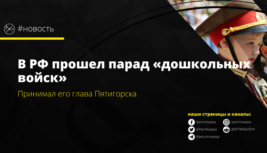 В российском Пятигорске прошел парад «дошкольных войск», который принимал сам глава города. Дети маршировали в военной форме у Вечного огня, сводный хор детсадовцев исполнял военные песни, а начальник городского Управления образования отметила, что такие форматы нужны и востребованы.