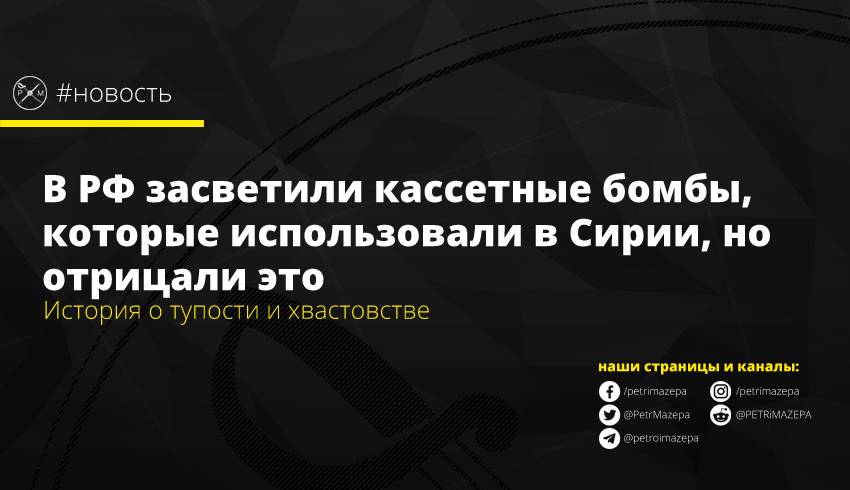 При этом ещё в 2016-ом СІТ заявляли, что самолеты, находящиеся на российской авиабазе Хмеймим в Сирии, несут бомбовые кассеты разных типов. В нем Кассетные боеприпасы, в частности, показывали в сюжете телеканала RT о визите министра обороны РФ Сергея Шойгу на авиабазу Хмеймим в июне 2016 года. Впоследствии пропагандисты отредактировали сюжет, удалив кадры с бомбами «из соображений безопасности военнослужащего», попавшего на видео. Спустя время RT опубликовал запись в первоначальном виде.