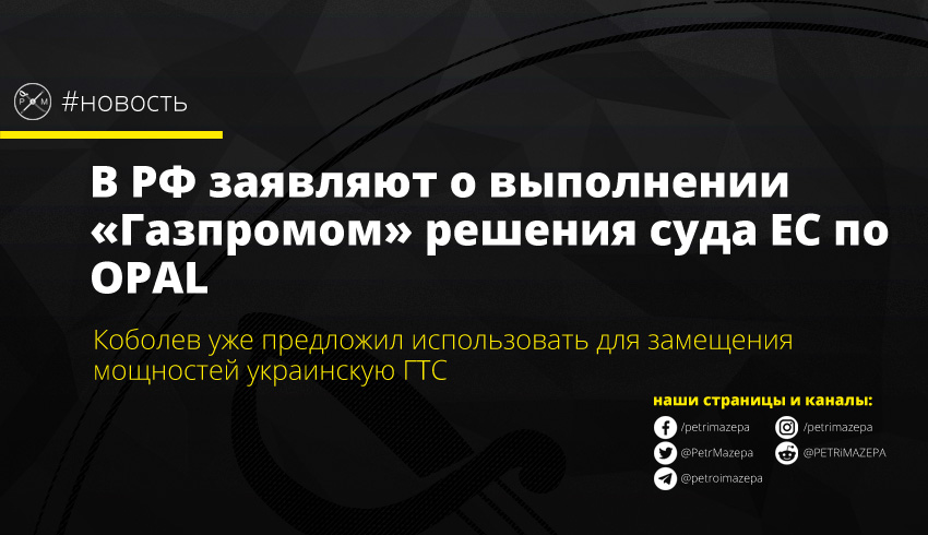 Российские СМИ заявляют, что «Газпром» снизил объем газа, передаваемого через газопровод Opal, как того требовало решение суда Европейского союза. Глава «Нафтогаз України» Андрей Коболев уже предложил использовать нашу ГТС для передачи российского газа в Европу.