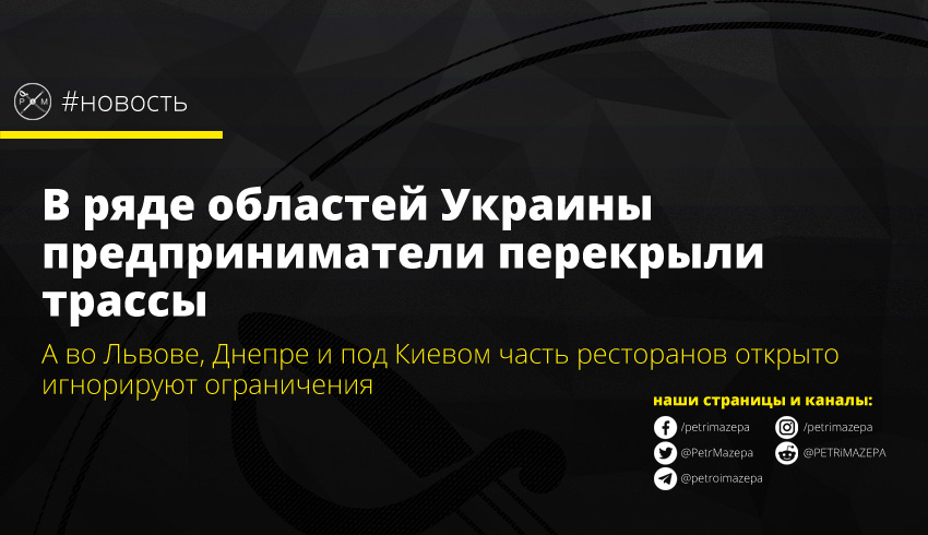В Черновцах, Одессе и Овруче предприниматели перекрывали трассы из-за ограничений, введенных в рамках «карантина выходного дня». В ряде городов власти дали понять, что не будут против, если бизнес продолжит работать. Чем часть торговых точек и воспользовалась.