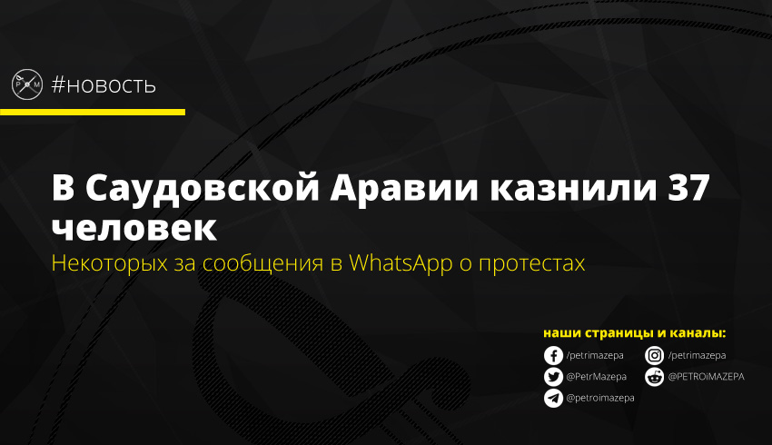 В Саудовской Аравии в столице Эр-Рияде и в городах Мекка и Медина состоялась сессия казней, которая стала одной из наиболее массовых в истории страны – смертный приговор привели в действие в отношении 37-ми человек.