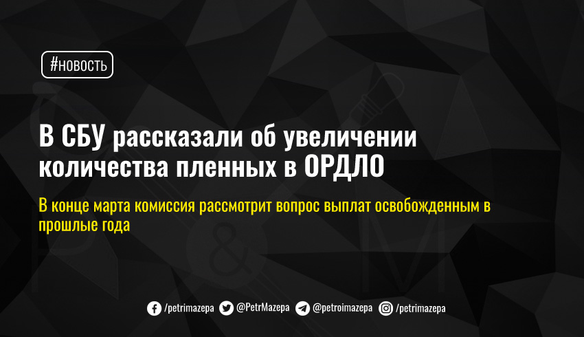 Экс-пленник «ДНР» Владимир Жемчугов на своей странице в Facebook рассказал, что межведомственная комиссия при Министерстве  реинтеграции временно оккупированных территорий 30 марта начнет рассматривать списки лиц, находившихся в плену на Донбассе, которые подготовила СБУ. Планируется, что выплаты начнут осуществлять с апреля. «Комиссия начнет рассматривать данные тех, кто был в плену с сентября 2014 и по декабрь 2017. Эти списки «не полные», потому что туда не попали те, кто был освобождён или выкуплен в другие времена, и без участия СБУ. Министерство обещает вместе с СБУ заняться законодательным урегулированием этой проблемы», - написал Жемчугов.