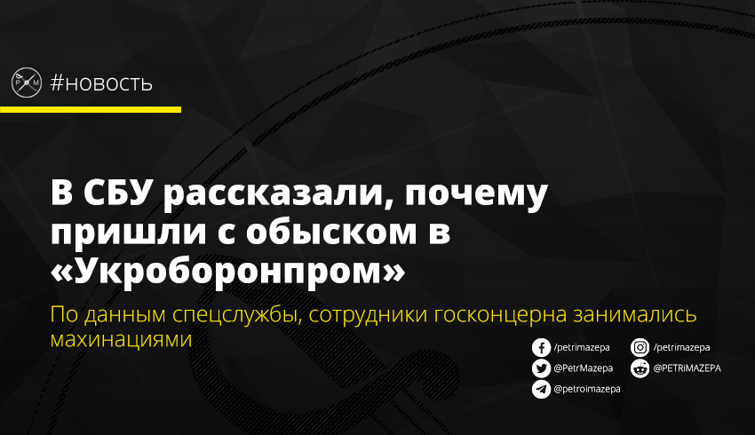 Служба безопасности Украины у себя на сайте сообщила детали - зачем и почему проводились обыски в «Укроборонпроме» и «Укрспецэкспорте», а также в офисе неназванной иностранной фирмы.
