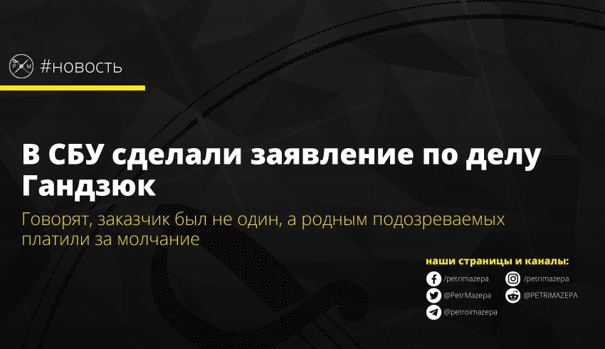 Следователи спецслужбы в настоящее время расследуют пять уголовных производств, касающихся убийства активистки. Одно из дел, по словам Тиводара, касается лиц, которые могут быть заказчиками, организаторами или пособниками преступления против Гандзюк, сообщает пресс-центр СБУ.