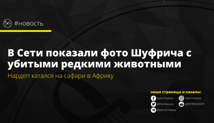 Фото с мертвыми животными и Шуфричем опубликовало движение «ЧЕСНО» на своей странице в Facebook. Информация об участии украинского политика в африканском сафари на сайте агентства Thormählen & Cochran Safaris датируется мартом 2015 года. Однако активное распространение этой информации в Сети началось 28 декабря текущего года, после того как сообщество Ban Trophy Hunting France / Un clic Pour Un Safari, которое выступает за запрет спортивной охоты, сделало публикацию на тему в Facebook.