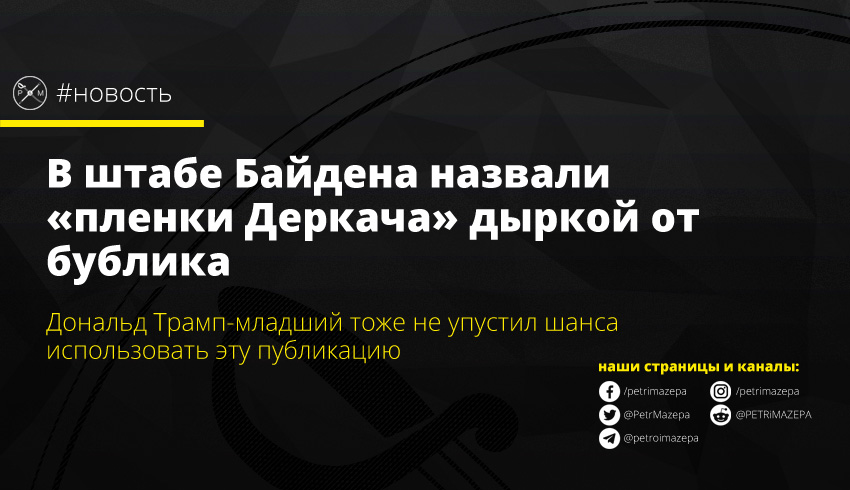 В штабе бывшего вице-президента США Джо Байдена отреагировали на «пленки Деркача», которые вчера представил украинский нардеп. Также не упустил шанса использовать эту публикацию и Дональд Трамп-младший.