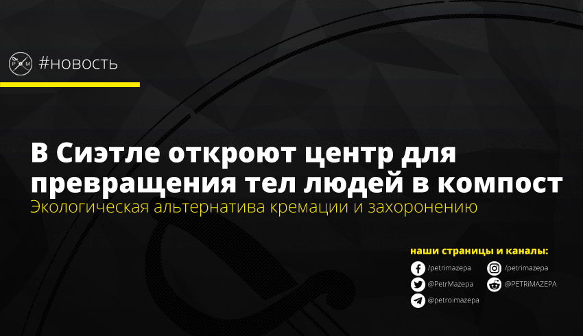 В Сиэтле построят первый в мире центр, где тела людей будут превращать в компост. Переработка тела в удобрение станет экологической альтернативой кремации и захоронению. Строительство центра планируется завершить к весне 2021 года.