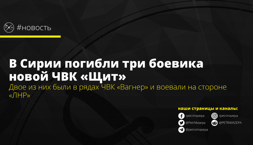 В Сирии погиби трое россиян, которые по информации СМИ работали на частную военную компанию (ЧВК) «Щит». Эта ЧВК охраняет в Сирии объекты компании «Стройтрансгаз», контролируемой близким знакомым российского президента Владимира Путина Геннадием Тимченко. Известно, что двое из погибших ранее принимали участие в российской агрессии на Донбассе.