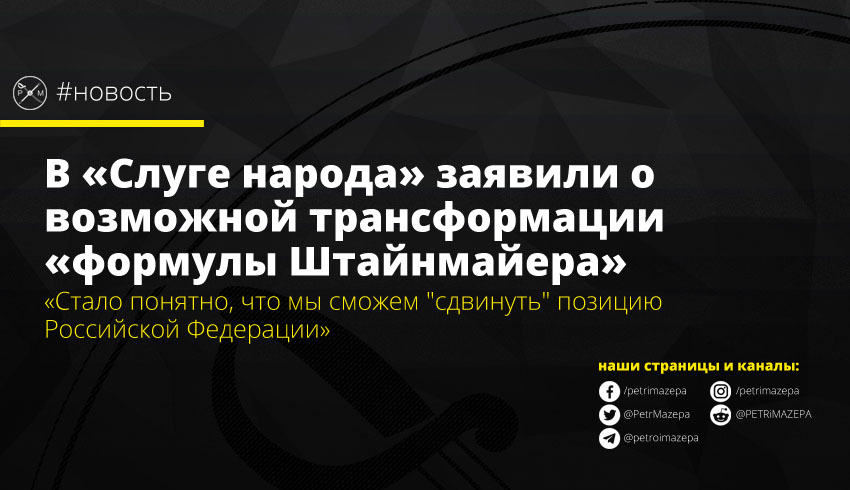 Замглавы фракции «Слуга народа» Максим Ткаченко заявил, что «формула Штайнмайера» может «немного трансформироваться» в процессе переговоров в «нормандском формате». Такая возможность по его словам появилась после переговоров в Париже, где стало известно о возможности «сдвинуть» позицию РФ.