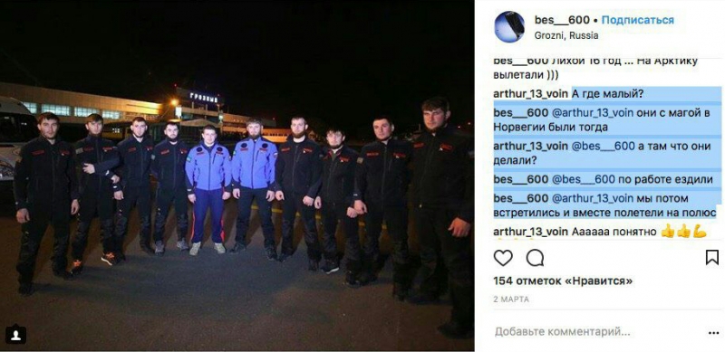 По данным «Новой газеты» на Шпицбергене бойцы бывали неоднократно и с оружием в руках. Сотрудники чеченского спецназа сами публиковали в соцсетях фото, судя по которым «Летучий отряд Кадырова» (так называют себя бойцы этого формирования – ред.) работает в Арктике, в том числе и в норвежской ее части с 2016 года. В частности, был обнародован снимок на фоне грозненского аэропорта. В комментариях автор указывает: «Лихой 16 год. На Арктику вылетали».