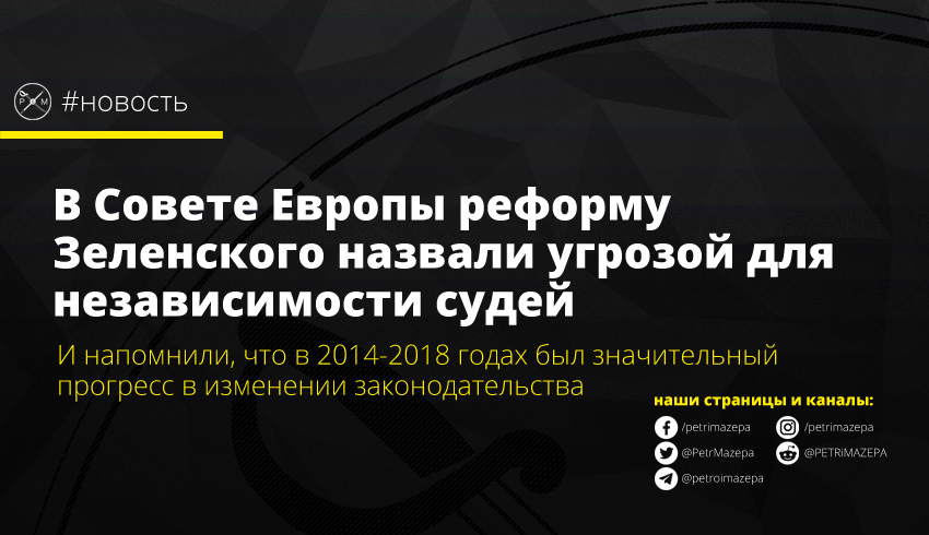 Сегодня Комитет министров Совета Европы напомнил, что в период 2014–2018 годов украинская власть в сотрудничестве с Советом Европы достигла значительных успехов в реформировании законодательства для создания независимой судебной системы. И отметили, что реформа Зеленского по Верховному Суду несет потенциальную опасность «неблагоприятных и долгосрочных последствий» в работе этого органа.
