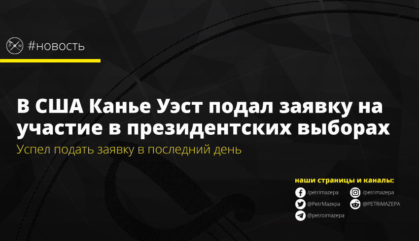 Американский музыкант Канье Уэст официально подал заявку на участие в выборах президента США. Он подал документы в последний возможный для этого день.