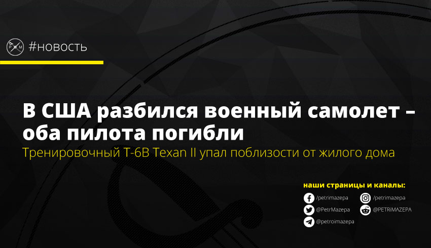 Учебно-тренировочный самолет T-6B Texan II ВМС США потерпел крушение в штате Алабама – оба летчика погибли. Самолет упал на территории города, и повредил жилой дом, где позже начался пожар, но никто из мирных жителей не пострадал.