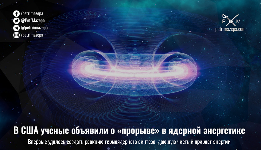 В США планируется на официальном уровне анонсировать прорыв в сфере термоядерной энергетики — ученые впервые создали реакцию термоядерного синтеза, обеспечивающую чистый прирост энергии. Это открытие — важная веха в долгих поисках технологии, которая могла бы обеспечить неограниченную, чистую и дешевую энергию.