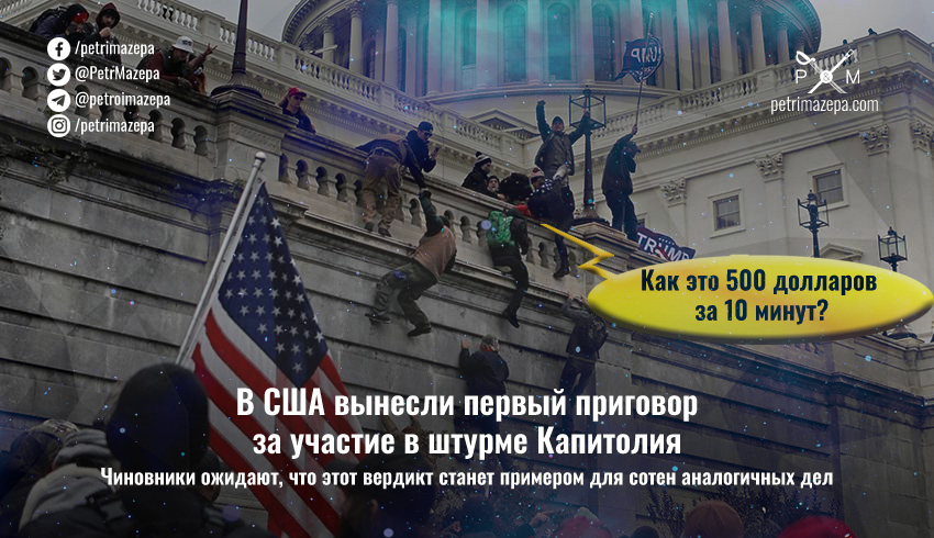 Поскольку всего в рамках расследования штурма Капитолия арестовано около 500 участников, американские чиновники ожидают, что этот приговор станет примером для ускоренного рассмотрения сотен подобных дел.