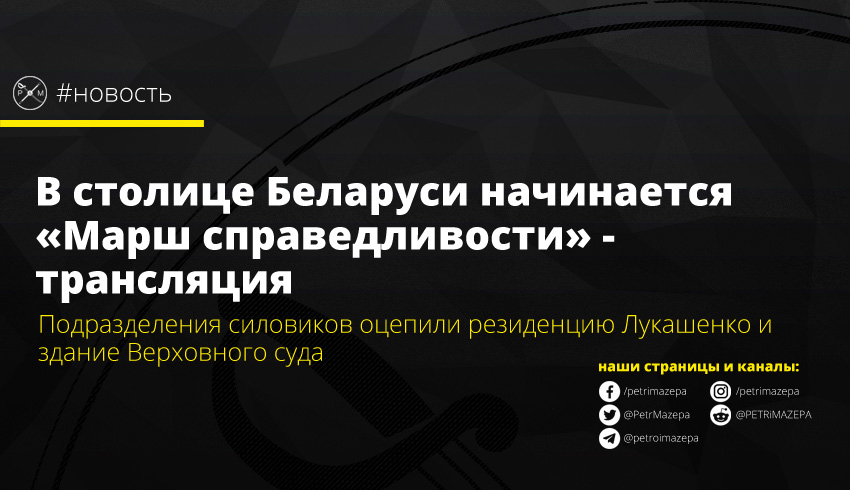 По воскресеньям в Беларуси уже традиционно проходят наиболее массовые марши протеста, на которых жители республики выражают свое недовольство с официальными результатами президентских выборов и последующими жестокими действиями силовиков. Сегодня лозунгом «Марша справедливости» стала фраза «Не забудем, не простим».