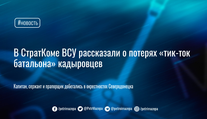 Управление стратегических коммуникаций (СтратКом) ВСУ сообщило, что в боях около Северодонецка Tik-Tok-батальон главы Чечни кадырова понес потери.
