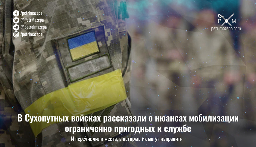 «Военнообязанные, которые ограниченно пригодны к военной службе в военное время, могут быть мобилизованы, но их служба будет проходить не в боевых частях, а в военных частях обеспечения», — отметил в комментарии Military Media Centre начальник управления персонала штаба командования Сухопутных войск ВСУ полковник Роман Горбач.