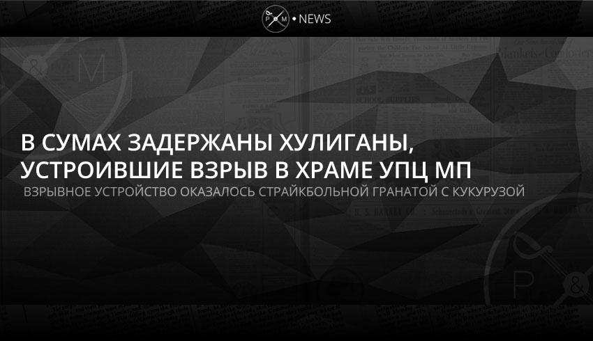 В Сумах полицейские задержали подозреваемых в хулиганстве на территории храма РПЦ в Украине, все еще называющей себя УПЦ МП. Выяснилось, что, вопреки заявлению представителей церкви, взрывное устройство было простой пиротехникой с зернами кукурузы, повреждений зданию нанесено не было, никто не пострадал.