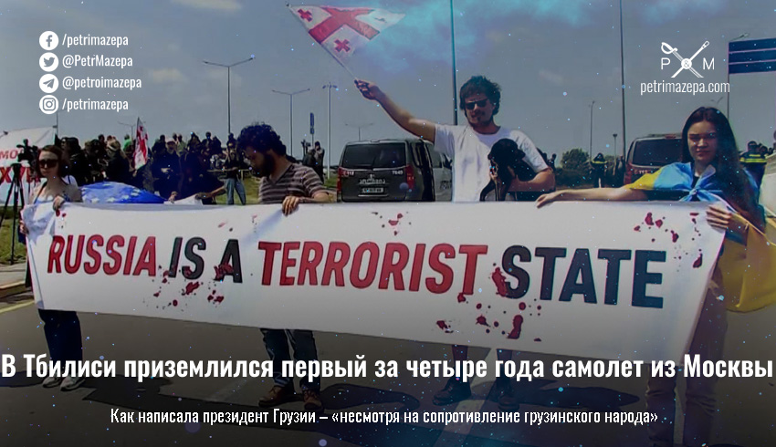 А президент Грузии Саломе Зурабишвили в твиттере написала, что «несмотря на сопротивление грузинского народа, Россия приземлила свой нежелательный самолет в Тбилиси».