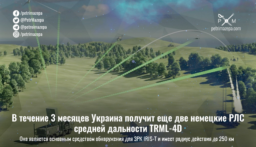 Также отмечается, что в начале этого года компания HENSOLDT уже заключила контракт на четыре радара TRML-4D. Эти четыре радара будут предоставлены в рамках поставок Украине следующих систем противовоздушной обороны (ПВО) IRIS-T SLM.