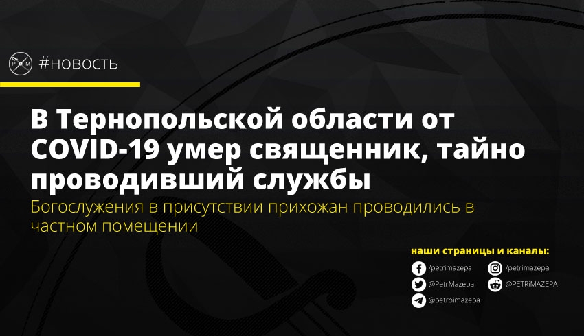 В Тернопольской области от COVID-19 скончался священник, который тайно, несмотря на карантин и запреты, проводил богослужения в частном помещении. Проведена работа по выявлению широкого круга контактных лиц, их образцы отправлены на анализ в лабораторию в Тернополе.