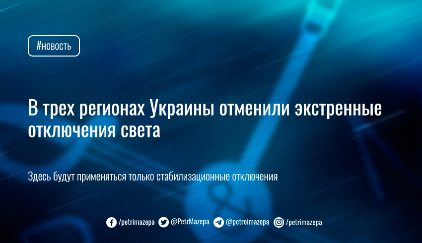 В трех регионах Украины — Киеве, Киевской области, а также Днепропетровской области — отменили экстренные отключения электрики.