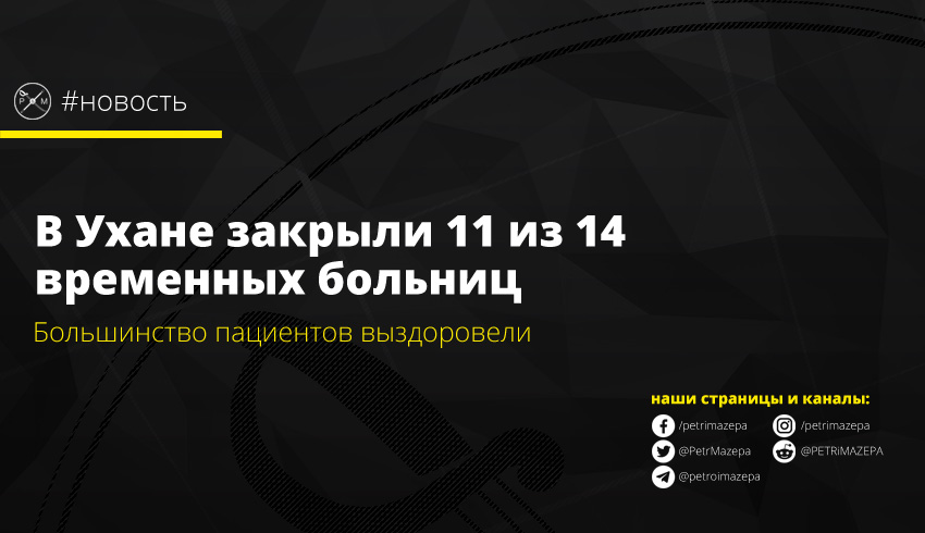 В китайском городе Ухань, который стал эпицентром распространения коронавируса, закрыли 11 больниц, которые предназначались для зараженных людей. Большинство пациентов выздоровели.