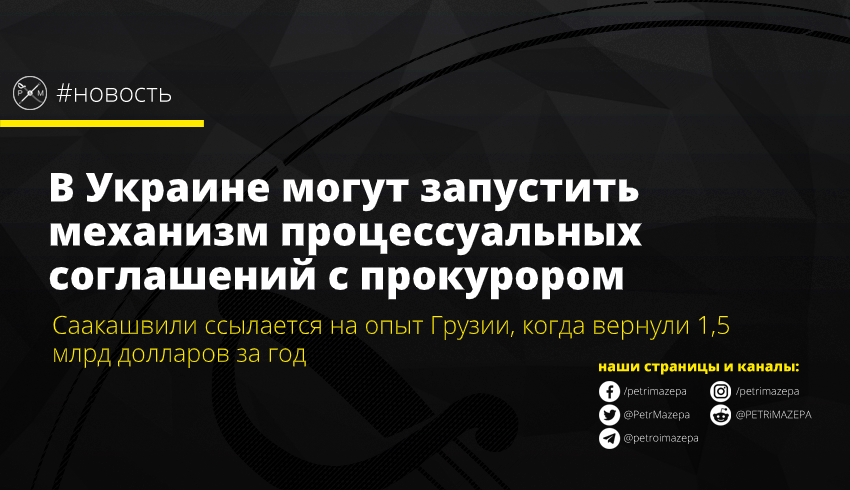 Глава исполнительного комитета Нацсовета реформ при президенте Украины Михеил Саакашвили сообщил, что в Украине может быть запущен механизм процессуальных соглашений с прокурором для урегулирования судебных споров с бывшими собственниками обанкротившихся бизнесов.