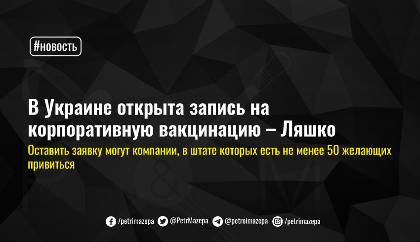 В Украине открыта запись на корпоративную вакцинацию – Ляшко